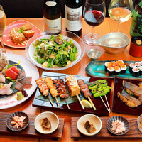 2時間飲み放題付き8,000円コース 特選食材の豪華プレミアムコース。産直魚介、和牛の炭炙り 大切な方々との宴会にぜひとも! 高級食材で乾杯 自慢の旬料理と焼き鳥、和牛の高級炭火焼きも堪能出来るプレミアムコース!