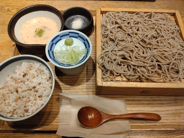 あざみ野駅から徒歩1分、エトモの地下1階にあるお蕎麦屋さん。店内は意外と広く、落ち着いた雰囲気で、JAZZのBGMが心地よく流れていました。 日本酒の品揃えが豊富で、特に私が好きな「みむろ杉 Dio Abita」を発見!フルーティーで飲みやすく、最高!他にも「大嶺」「鳳凰美田」「写楽」など、こだわ... 詳細を見る