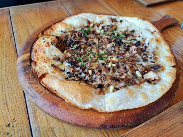 サラダはオリーブがゴロゴロ入っていて別注のライ麦パン(198円)と頂きました。ローズマリーフリット(418円)も程よい塩加減とローズマリーの...