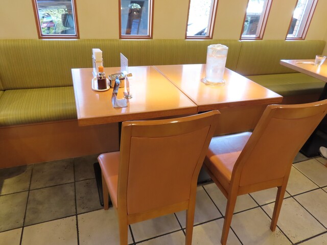 お店に入ると3つあるテーブル席のうち、1つだけ空いています。
