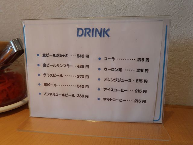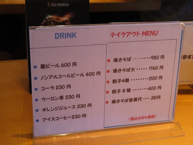 さてメニューは焼きそばの普通と大、一口餃子4個と8個、ライスの大、小、そして飲み物しかありません。