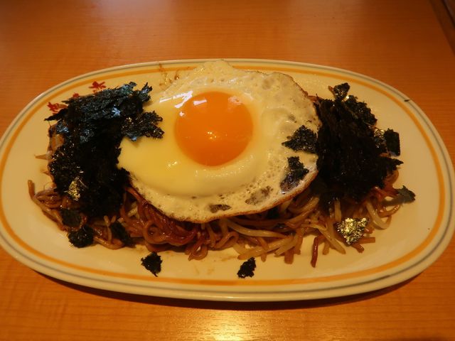 私は焼きそばの大に目玉焼きと海苔をトッピング、家内は普通の焼きそばに目玉焼きと海苔をトッピングを注文しました。