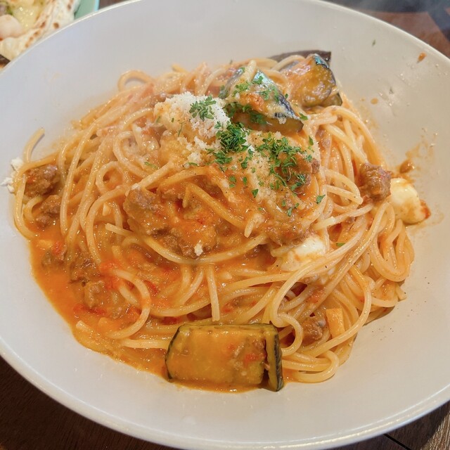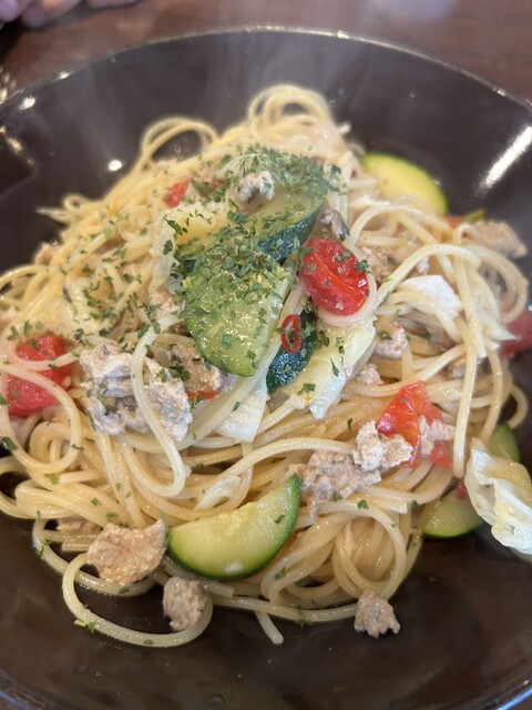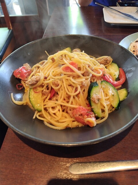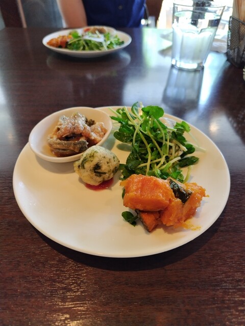 ピザセット(マルゲリータと、もう1種類を選んでハーフ&ハーフにできるのは嬉しい)と、パスタセットを頼む。前菜は、、、普通かな。。ピザは...