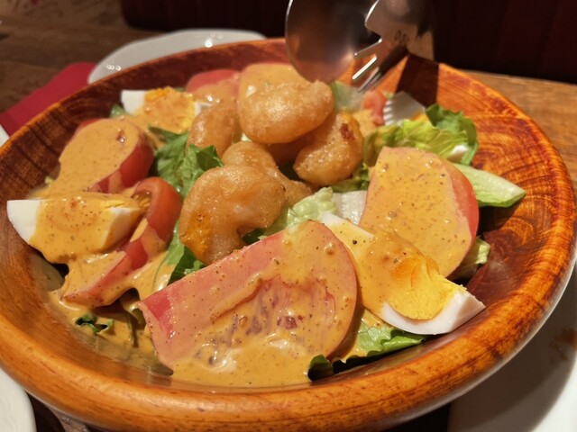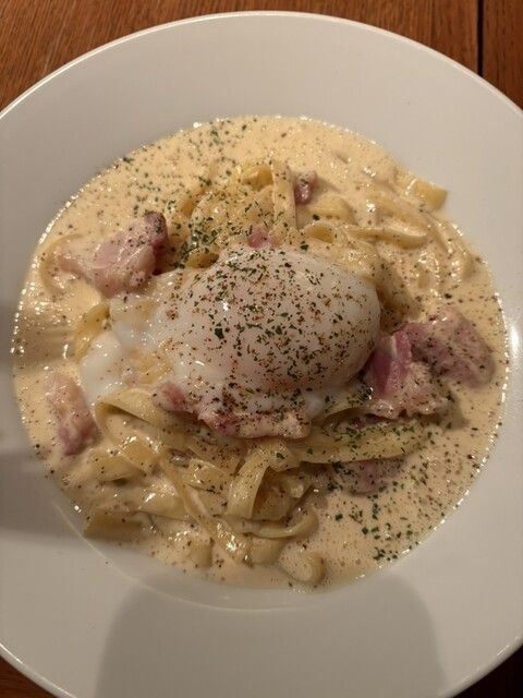 本日のおすすめ「PASTA Bセット」を頂きました。 今まではディナー営業をメインにされていたようですが、ランチの営業も始まったということを知り、 急遽ランチセットを頂くために訪問です! メインは日替わりの3種類のおすすめから チョイスできます(パスタや牡蠣カレー等) そして、ミニサラダ/バケット/ミニドリンクバー もついています! メインの中でもパスタは3種類から選ぶことが... 詳細を見る