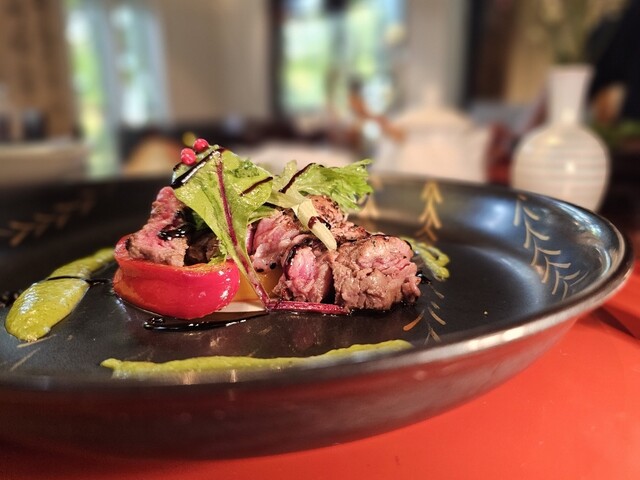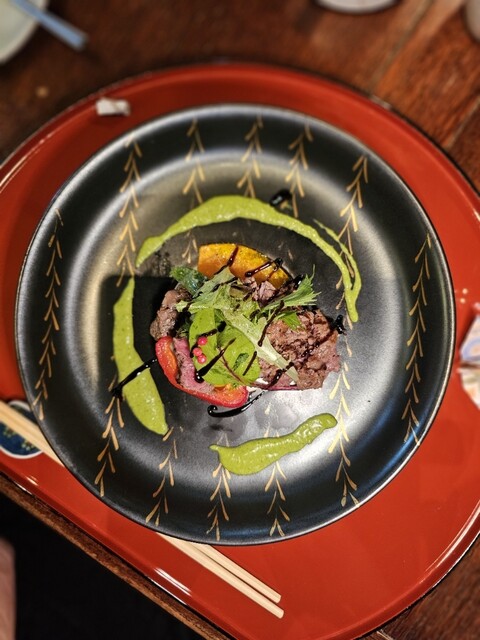 繊細優美な日本料理とフランス料理との素敵な出会いから生まれた【むくの実亭】。旬を遊ぶ料理として独自の「遊膳料理」と名づけられた料理の数々が並びます。フレンチの定番料理を和の皿に盛りつけた『スズキのポアレ』や『カンパチのカルパッチョ』など、旬の魚介や食材をふんだんに使った料理が楽しめ、訪れるたびに新鮮な驚きに出会えるでしょう。料理もさることながら、和情緒溢れる京焼きの器や、西洋アンティークのイ...