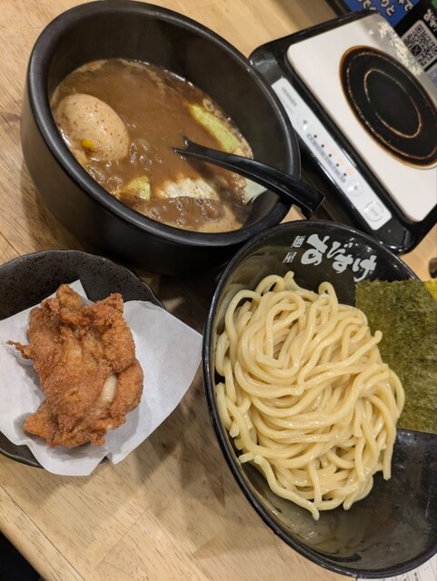 味玉つけ麺、唐揚げ1個 1300円 仕事の出先で見つけ訪問。 夜、車で走っていると、インパクト大な看板。 何の店?と思い近づくとラーメン屋さん。 食べログで見てみると評判は良さそう。て事で行ってみました。 店内に入るとすぐに注文用のタブレットがあり、ここでメニューを選び... 詳細を見る
