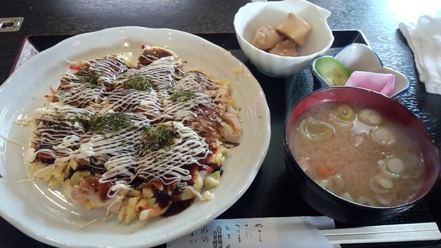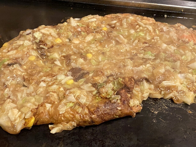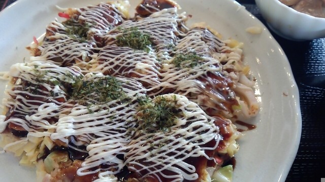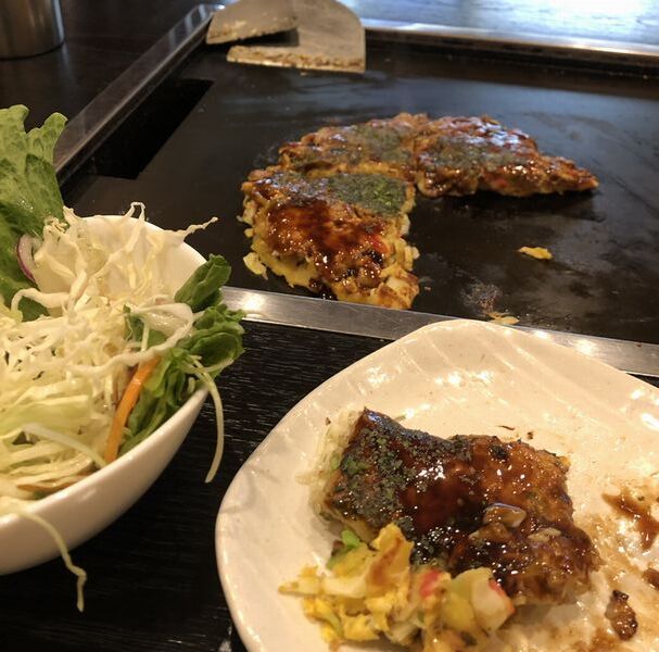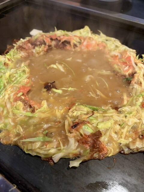 山芋入りの生地でふっくら仕上がるお好み焼きは、タレも美味♪