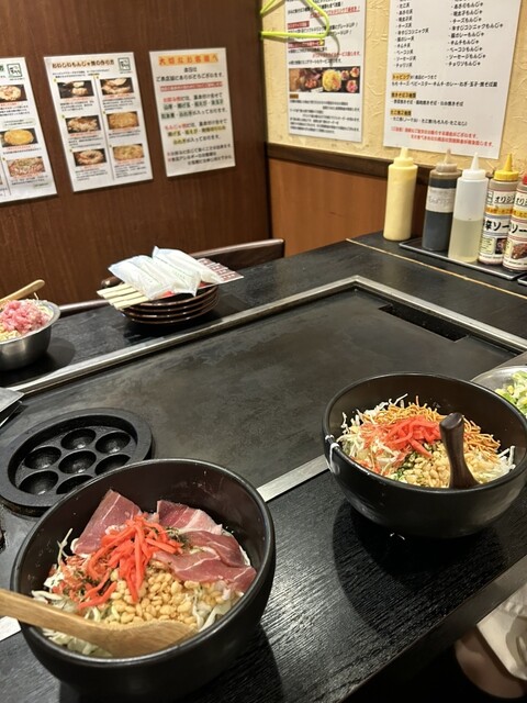 旦那ともんじゃ食べに行こうと調べて見つけたお店です。食べ放題にするつもりはなかったのですが、1,800円/人でソフトドリンク飲み放題付きの食べ放題があったのでついそれにしちゃいました。お好み焼き、もん...