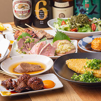 月忠の料理を堪能できるコースです。自慢のもつのくしやきや刺身、サラダ、シメの和風オムライス、デザートなど、迷ったらこちらのコースをぜひお選びください。