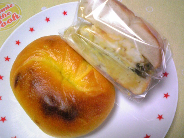 オススメのハーフサイズサンドウイッチの「はちみつ玉子サンド」は、ほんのり甘味のある生地に玉子サラダが不思議と合う。