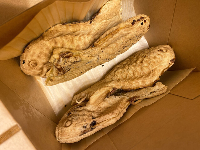 一口目が、粉っぽいの謎。 今日のあんこは甘さ強めで美味しかったー。 一匹は歩きながら食べて、もう一匹は帰宅後にオーブントースターで焼いた! パリパリの生地が美味しい! やっ... 詳細を見る
