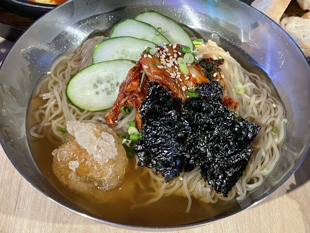 立ち飲み屋さんを出て韓国料理屋さんへ行こうという友人たち。チャプチェやキムチぐらいならイケると思ったので入りましたが、ラストオーダーに近い時間帯となっていました。お店の方がかなり優しく対応をしてくれたのは感謝ですね。