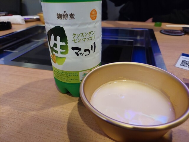 メニューを見てビックリ!単価が全体的に安すぎます。上タン塩、上ハラミが1000円以下でチャプチェ、キムチも500円って何だ?と思いながら注文。お酒は 生マッコリにしましたが、意...