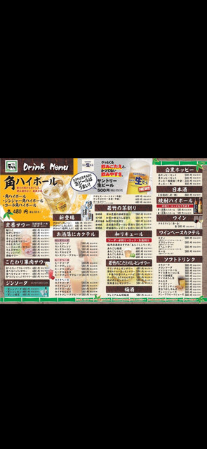 | ドリンク | 日本酒あり、焼酎あり、ワインあり、カクテルあり、日本酒にこだわる、焼酎にこだわる、カクテルにこだわる |