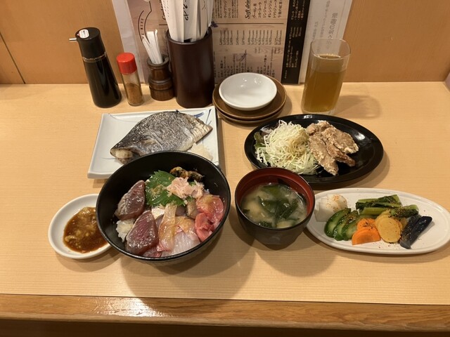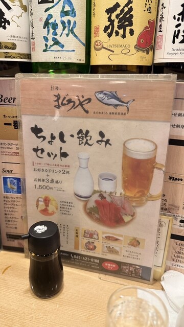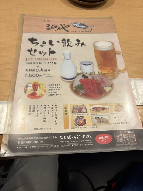 新横のまぐろやさんがちょい飲みセットを