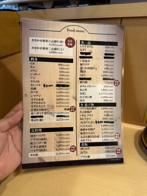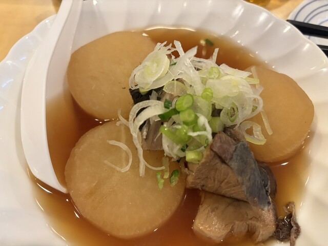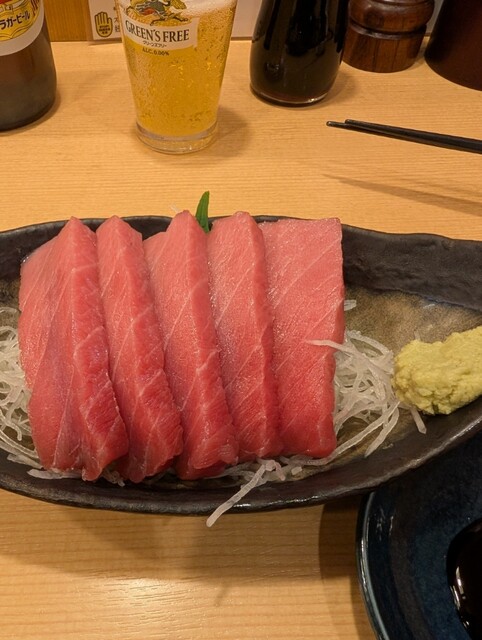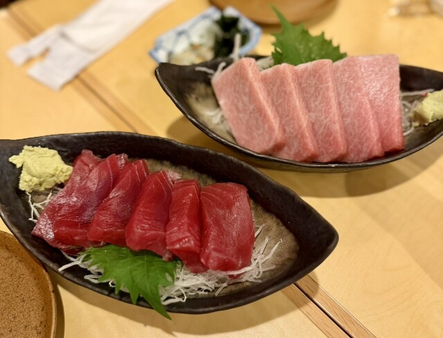 お店の名前がまぐろやというだけあって、マグロのお刺身が分厚くて新鮮でおいしかったです。カツオのお刺身も美味しかったです。おでんはあまり染み込んでおらず、いまいちかも?比較的料理の値段は高めかなと感じました。