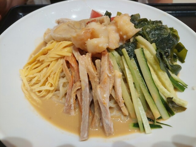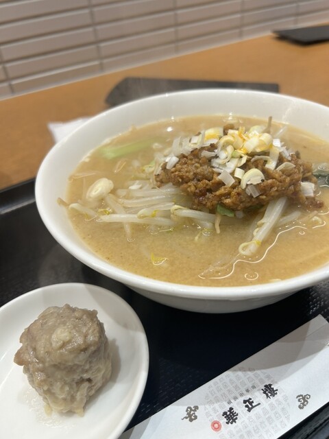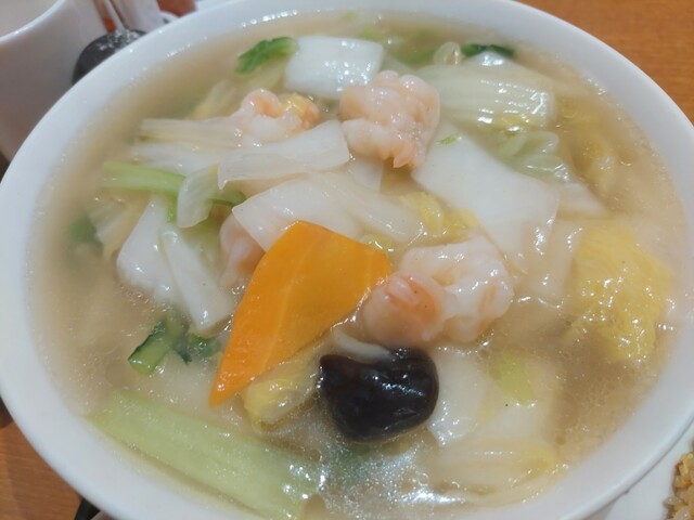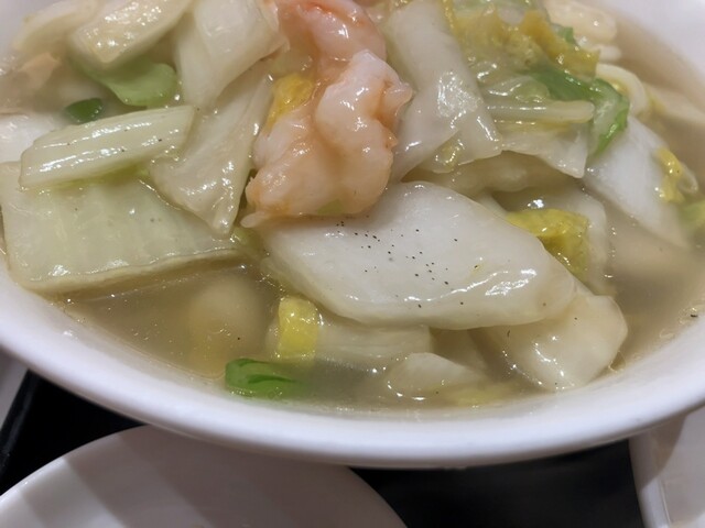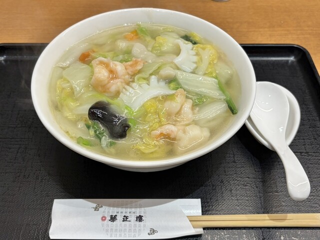 予防接種のついでに立ち寄ってみました。 惣菜・弁当エリア裏のイートインなので、カウンター6人 2人テーブル5個とコンパクトなお店です。 エビマヨはお酒欲しくなるので、 ・Cセット あんかけ海老塩ラーメンと半チャーハンに焼売、ザーサイ、杏仁豆腐も付きます。 単品の一人前は、かなり量がある... 詳細を見る