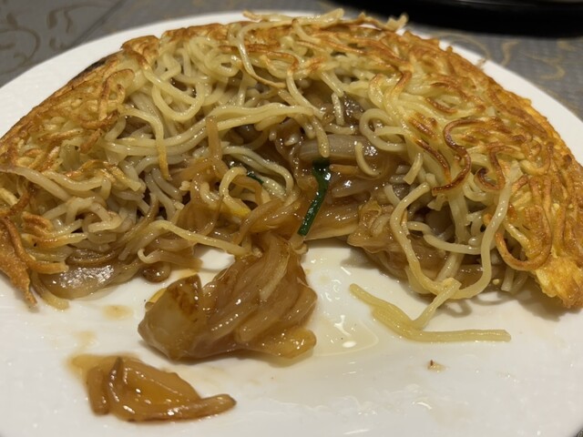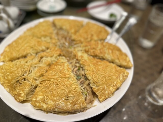 名物の「梅蘭焼きそば」をいただきました。999円という価格で、卵を纏った堅焼き麺の中にたっぷりと餡が閉じ込められたビジュアルにまず驚き。 正直「ちゃんと味が絡むかな?」と少し不安もありましたが、一口食べてすぐにその思いは覆されました! 外のカリカリ麺と中のとろとろ餡がしっかり絡み合い、食感と味の... 詳細を見る