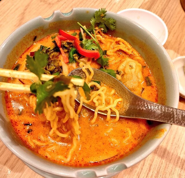 【タイのカレーラーメン・カオソーイ】タイ料理野中でも、こちらのカオソーイが好きです。イベント参加のために新横浜へ久しぶりの訪問。駅ビル併設のぐるめストリート内にあり、アクセス良好です。