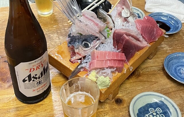 最寄り駅は中山駅。1階が魚屋で2階が居酒屋。刺身盛り合わせがイチオシのお店です。