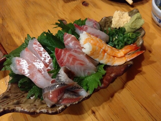 お刺身「魚河岸ごきげん三種盛り」(小・880円)をオーダー。