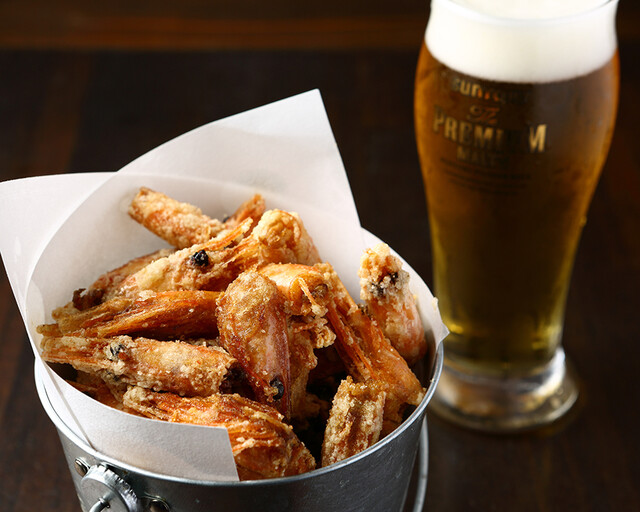 お通し海老の頭から揚げ食べ放題300円 |