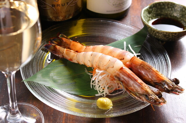 白ワイン+天然車エビ (by お店)