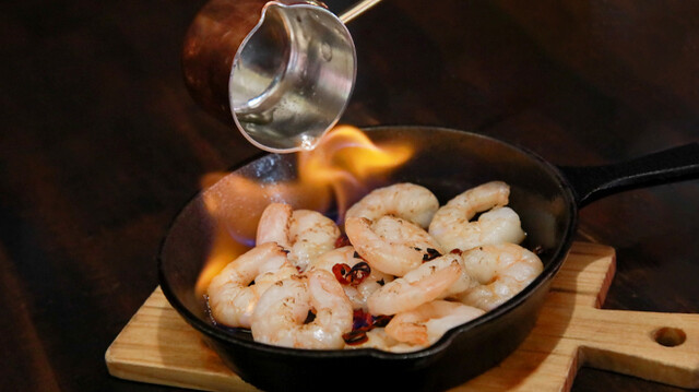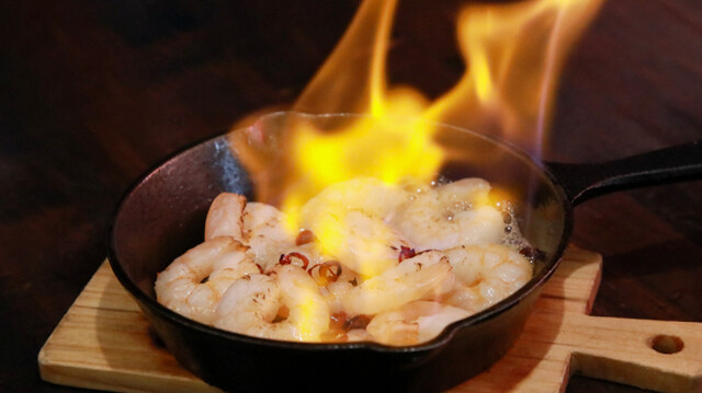 ぺペロンエビonファイアー もえている所 (by お店)