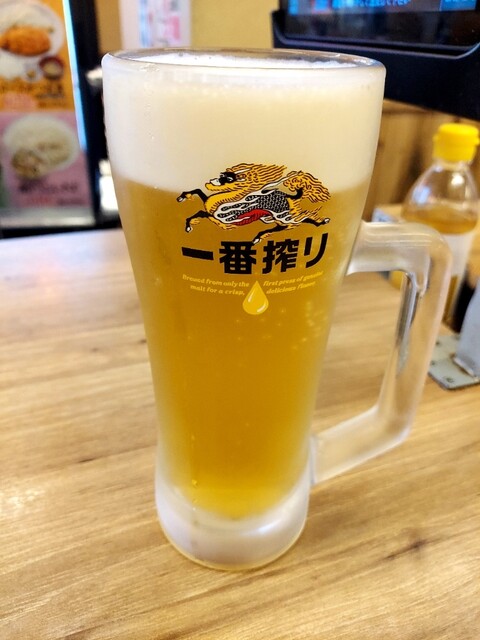ピッピッと注文、「一番搾り(中瓶)」! ( ̄▽ ̄)=3 プハァー