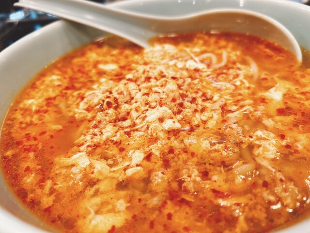 ニラ入りタンタンメン 1,110円 めちゃ辛ニンニク多め 普通ラーメンは丼にスープを張り麺を入れて具材を乗せるという手順で作られますがここでは丼に麺を盛りその上にニラを山盛りに乗せ最後に挽肉溶き卵などと一体になったスープを注ぎます! そのため着丼時にはニラはほとんど見えません♪ 3... 詳細を見る