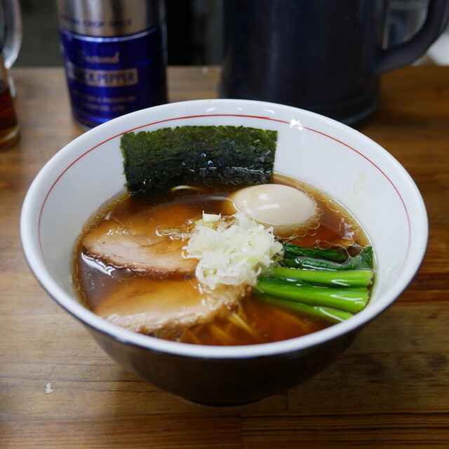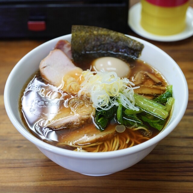 味玉らーめん(税込950円)を注文しました。 キレのある醤油スープでチャーシューの脂が輝いていて食欲をそそりますね。ほんのり甘めに味付けされたメンマ、柔らかくて甘く光沢のある橙色の黄身が特徴的な味玉最高です。チャーシューは炭火で焼いているのか香ばしい薫りがしました。3, 4枚入っていてボリュームあ... 詳細を見る