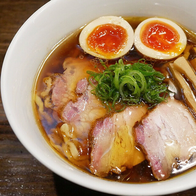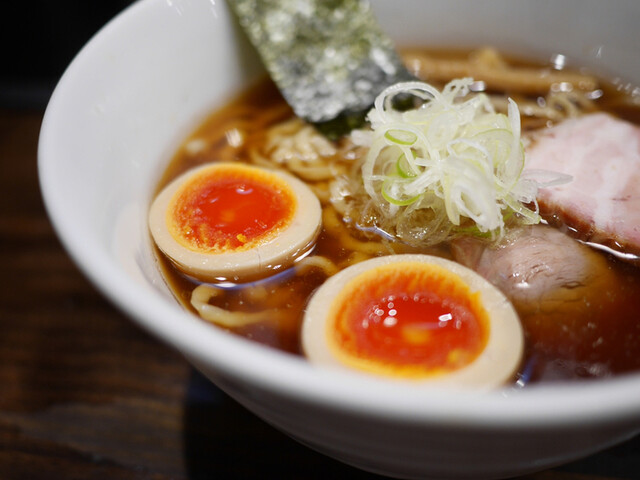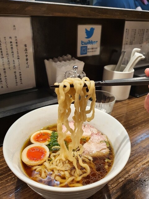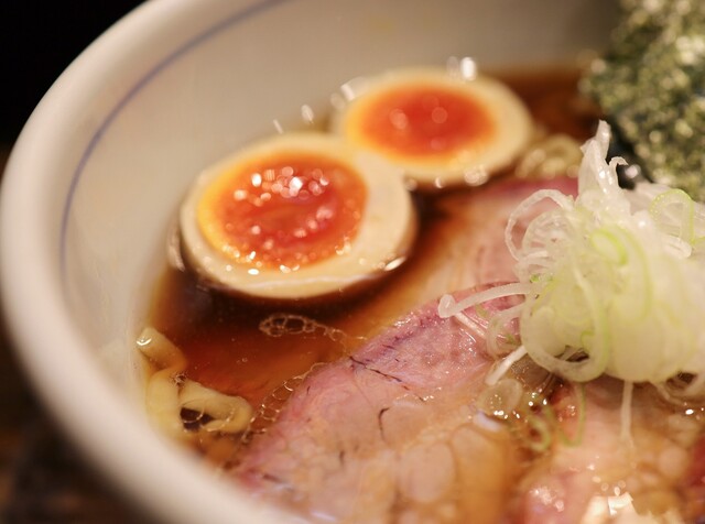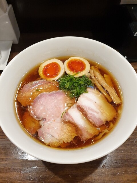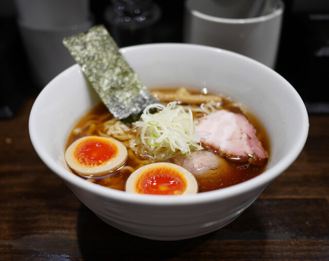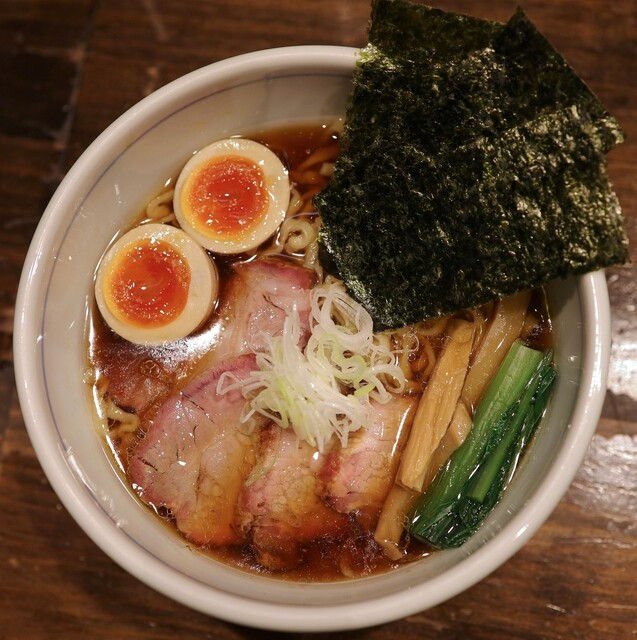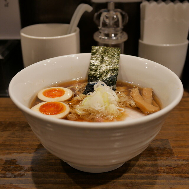 丸鶏からなるスープがベース。醤油は生揚げ醤油を用いており独特の風味。塩は天日干しを用いており乾物系ダシとのバランスが絶妙。太く縮れてモチモチした麺も好みのタイプ。落ち着いた店内の雰... 詳細を見る
