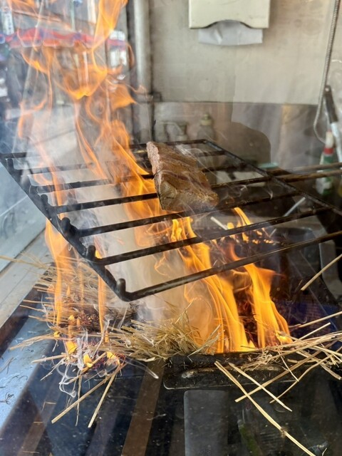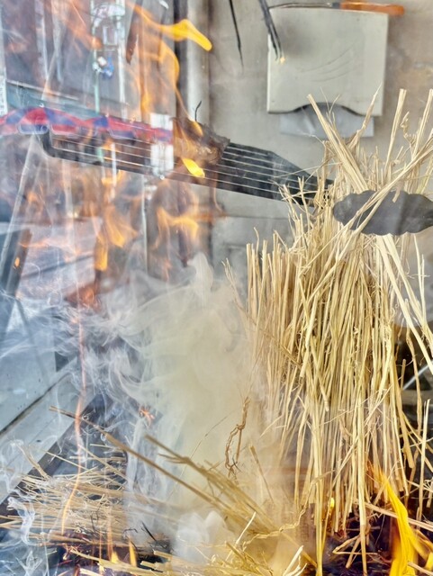 わら焼きをしているのが見えるお店に到着したのは、週末の13時20分です。