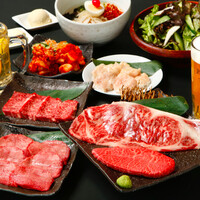 和牛焼肉を楽しめて、 更に馬肉料理「生馬刺し」も盛り込んだ、 豪華で大満足のメニュー内容! 当店自慢の焼き肉は希少部位を取り揃えた贅沢を堪能できるコースです!