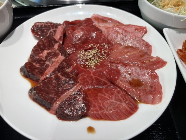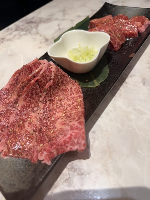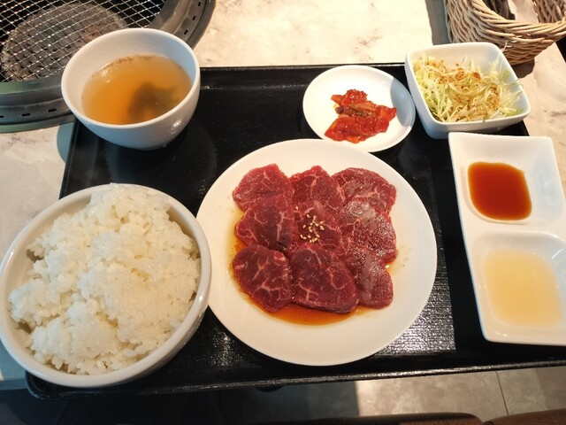 入ってみるとランチ限定セットがあったのでこちらをチョイス。ロースはともかく、カメノコ/シンシンはちょっと珍しいと思ってオーダー。どちらも脚の付け根であるシンタマの一部。