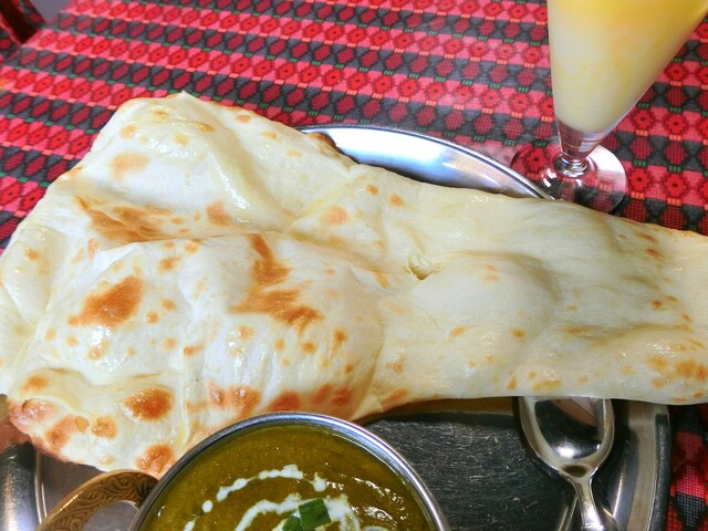 辛さは普通、ドリンクはチャイ(ホット)、ナンにしました。