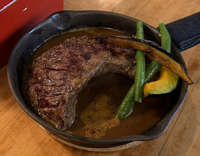 カレーは初めてのサーロインステーキ。美味しいです。昨年9月から溶岩石x炭火に焼き方が変わったようで、それまでよりも肉汁が閉じ込められるとのこと。それまででも十分美味しかったと思いますが、さらなる進化を遂げているアルペンジローに改めて敬意を表します。