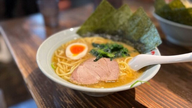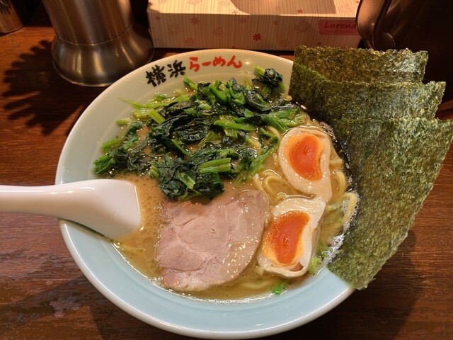 『らーめん』は、「横浜家系」なので「焼き海苔3枚」「チャーシュー」「ほうれん草」という定番トリオに加えて「味付け玉子」は...