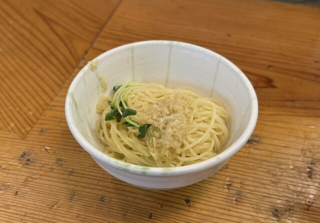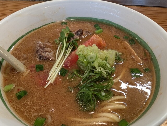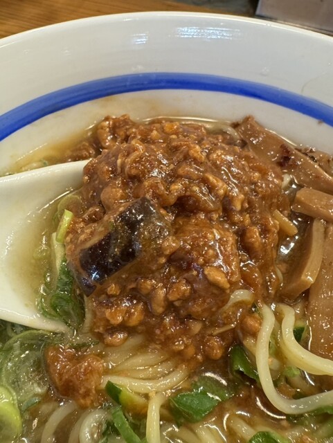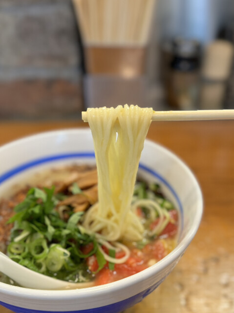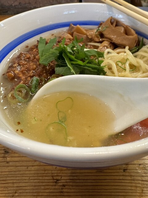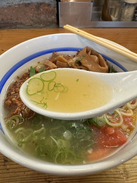 まずはスープをひと口。味噌と生姜の風味に加え、珍しいト...