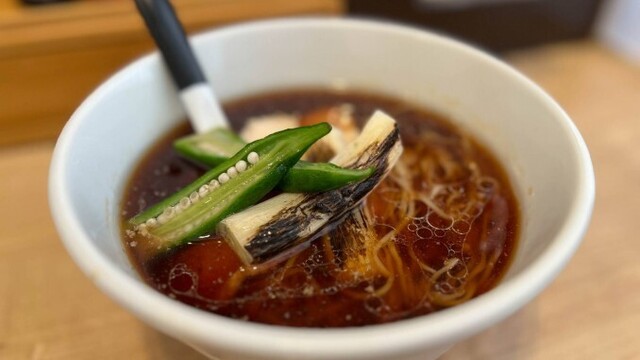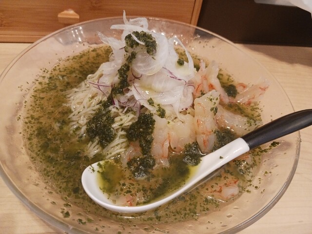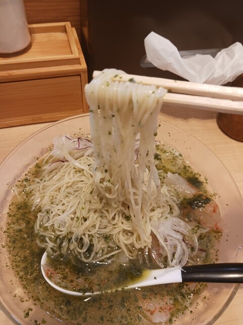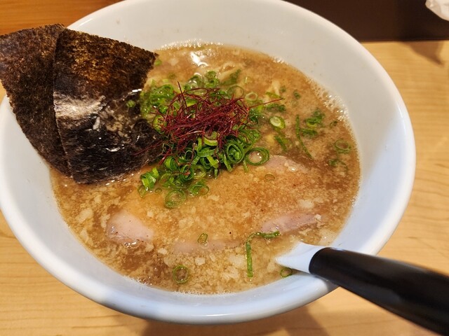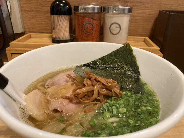 阪東橋駅から徒歩5分ほど。飲みの〆が食べたくラーメンデータベースで検索すると異様に高得点の一軒が。 LO22時と〆にありがたい。21時半の訪問でしたがカウンター6席ほどのミニマムな店内はほぼ埋まっていました。立派すぎる神棚に迎えられ硬派な雰囲気を感じるのもgood! 煮干ラインナップが豊富で大ま... 詳細を見る