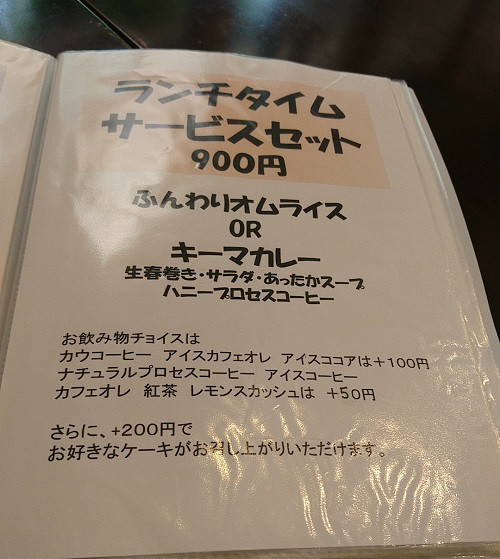 ランチセットは、 オムライスかキーマカレー 900円