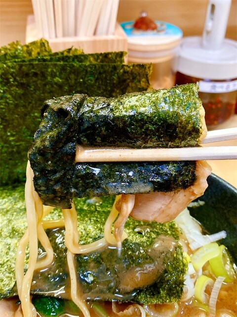 海苔増しラーメン(900)を購入し着席すると、ご店主が何とガチガチに...