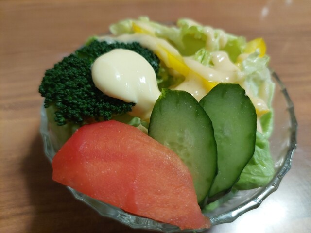 最初にミニサラダが提供されドレッシングが美味しいし、サラダも新鮮ですね。料理人の方は丁寧に処理をしておりフライパンで焼...