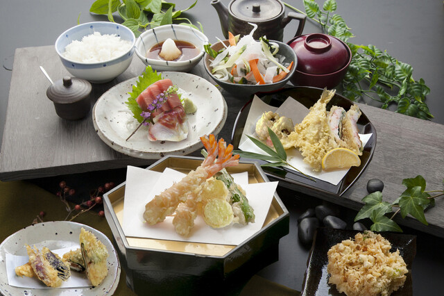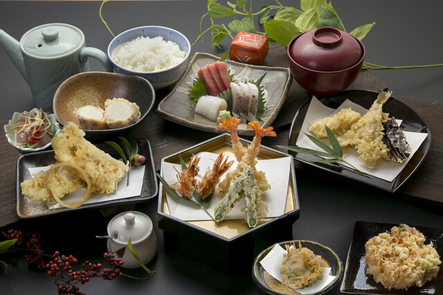普段のお食事はもちろん、ご会食やお集まりなどにも幅広い用途でご利用いただいており、旬の食材が満載のコースメニューをご用意しております。 専門店の職人がお揚げする老舗の天ぷらでお食事のひと時をお過ごし下さい。
