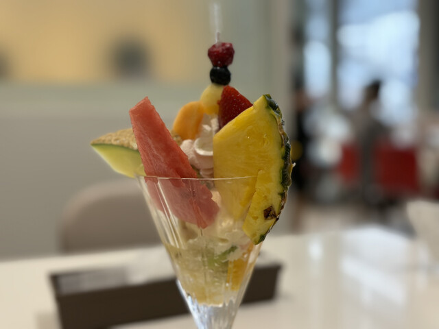 夢のフルーツパーラーで好きなものを好きなだけ って言ってもそんなにたべれないかな? でもたべたいのを選んで注文2品とドリンク 食べ終われば次の注文ができる シャインマスカットのパフェとローストビーフサンドでアイスティー 食べたときはなんて美味しいの幸せ フルーツは新鮮盛り付けもキレイで食... 詳細を見る