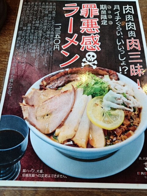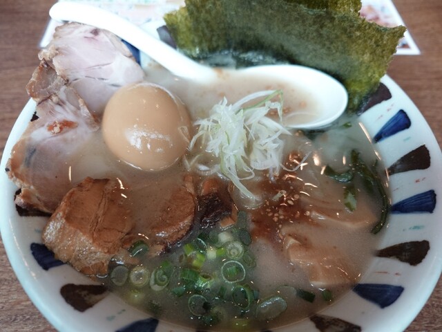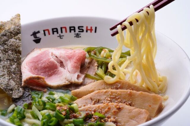平日昼にランチで訪問し、フラッグシップの「七志ラーメン1050円」を注文しました。お店のHPには「胡麻とニンニクの焙煎だれがベストマッチ。香ばしさがやみつきになる、七志定番の焙煎とんこつ醤油」と紹介されています。しかし、実際に食べてみると、クリーミーなスープはほとんどニンニクを感じさせませんでした。ニンニク臭が強ければ、平日の昼には食べられません(-_-;) むしろあっさりとした豚骨風味のスープ...