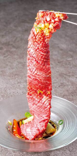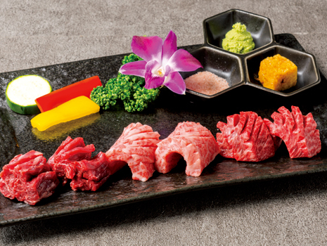 当店では、恵まれた気候風土のなか丹精込めて育まれる、みちのくの特産品「山形牛」を一頭買いいたしております。きめ細やかな肉質に上質な脂があいまった和牛の旨味、一頭買いならではの希少部位をぜひご堪能ください。