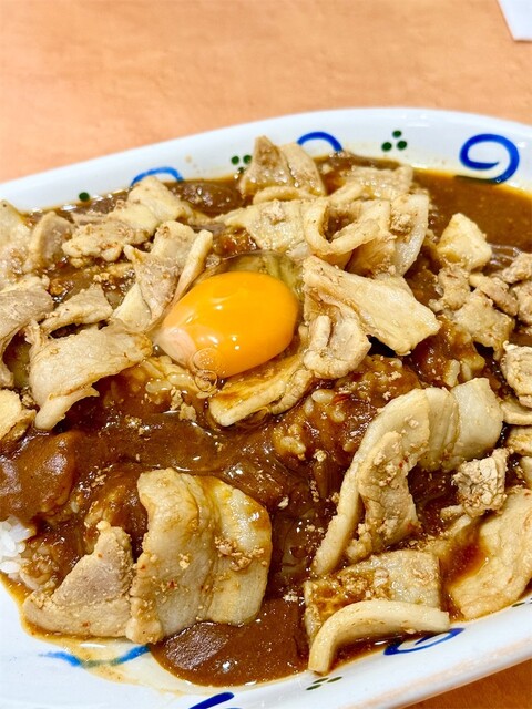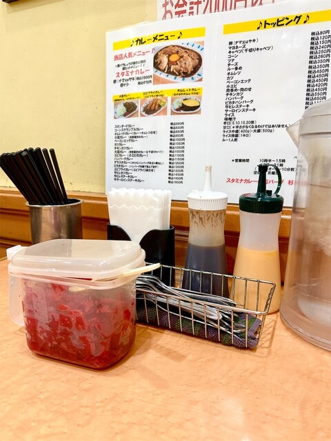 メニューを色々カスタム出来るようですが、初めてなので、人気メニューと言うスタミナカレー、生卵付...