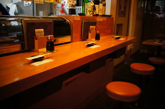 入店するとすぐ長いカウンター席、奥にはテーブル席があります