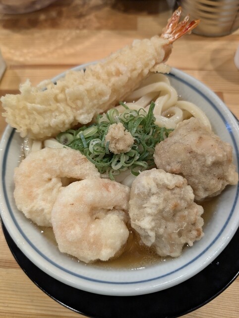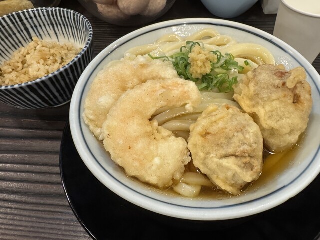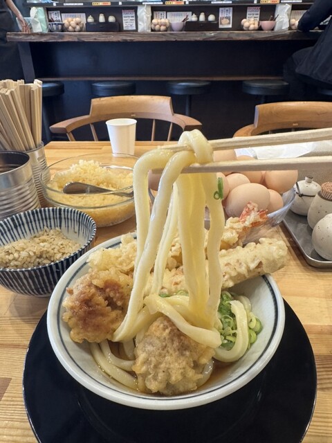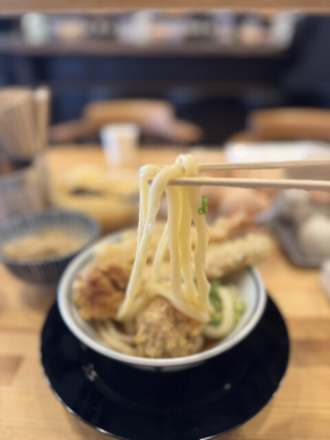 アゴだし饂飩が食べたくなり、何年か振りに伺いました。午後1時前だったので、店内は空いているかなと思いましたら、以前と変わりなくほぼ満席でした。いか鶏天うどんとアゴめしの食券を購入して、麺の量を大盛りでお願いするとカウンター席に案内されました。カウンター内では店員さんが連携しながら、お客さんに配膳して... 詳細を見る